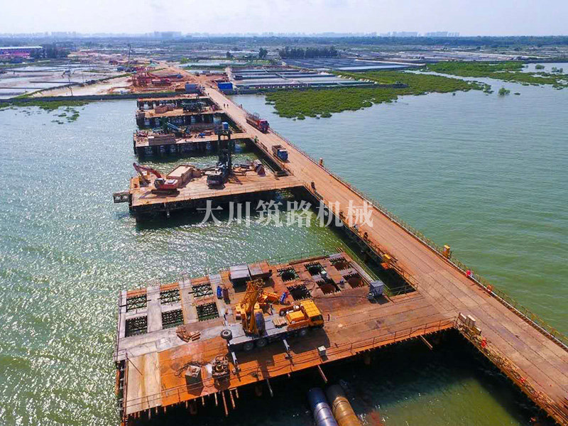 棧橋型號(hào):1775m*6m上承式棧橋及4000(平米)施工平臺(tái)。